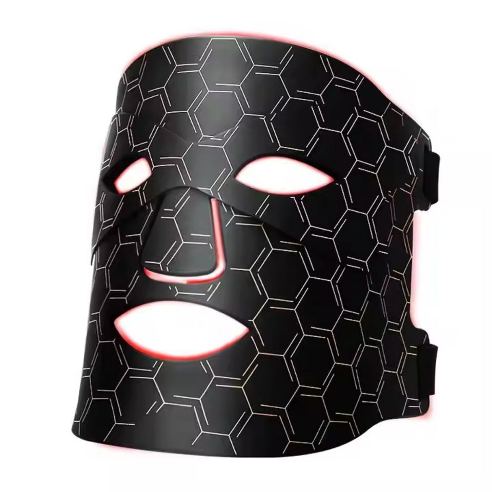 อุปกรณ์ดูแลใบหน้าทำจากซิลิโคนยืดหยุ่นยืดหยุ่นได้หน้ากากบำบัดด้วยแสงสีแดงความยาวคลื่น60 LED สี่ดวง
