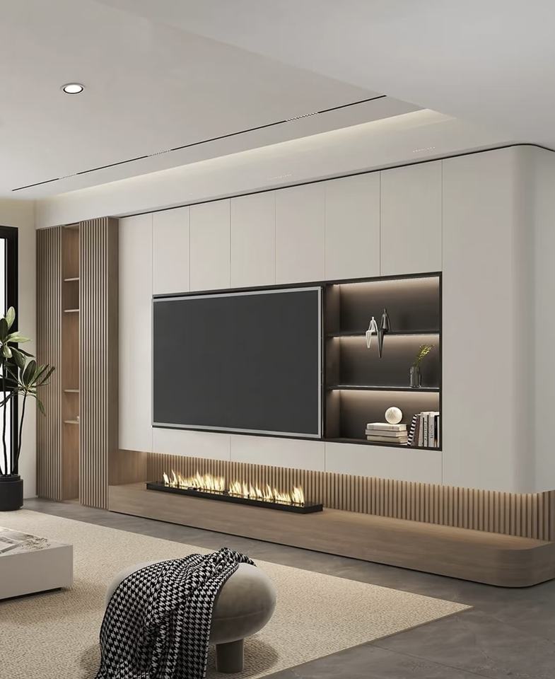 การติดตั้งแบบยึดผนัง: การติดตั้งแบบยึดผนังช่วยประหยัดพื้นที่พื้น และให้ลุคที่ทันสมัยและมินิมอล เหมาะสำหรับการตกแต่งห้องนั่งเล่น