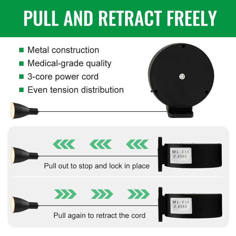ม้วนสายไฟเพดานแบบยืดหดได้ Mella สำหรับโคมไฟแขวน ปรับความสูงได้ด้วยตัวเอง ล็อคอัตโนมัติ 0.5-1.5 เมตร รับน้ำหนักสูงสุด 1.5 กิโลกรัม