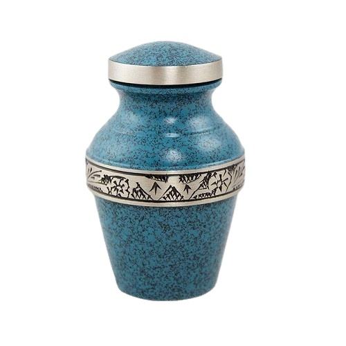 Metal Keepsake Cremation Urn Blue Marble & Pewtor Hand Engraved Band