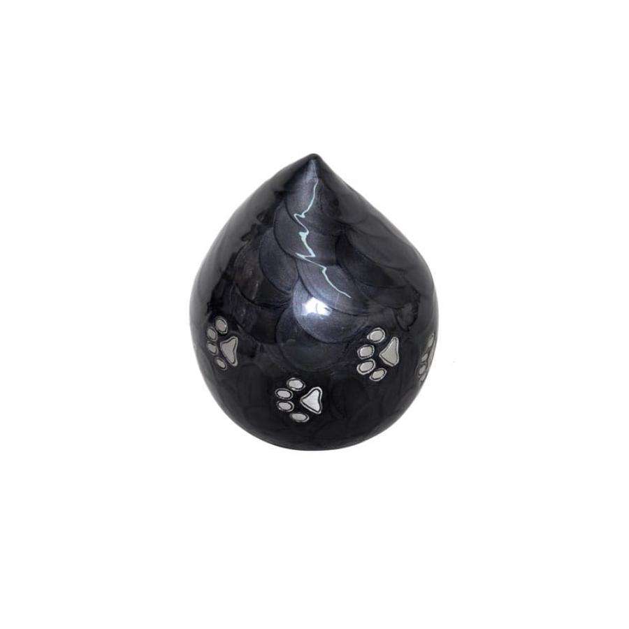โกศโลหะรูปหยดน้ำตาสีดำสำหรับใส่เถ้ากระดูกของสัตว์เลี้ยงโกศเงินพิมพ์ลายอุ้งเท้าสัตว์ที่ได้รับความนิยมมากที่สุด