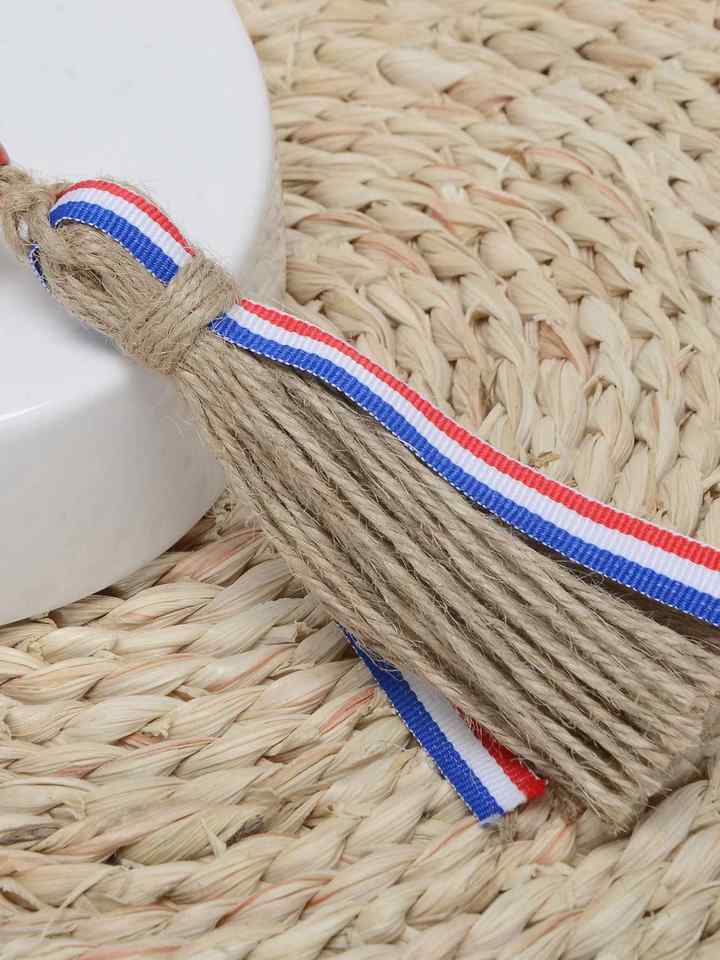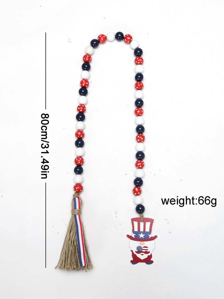 พวงมาลัยลูกปัดไม้ธรรมชาติทำมือ 80 ซม. พร้อมป้าย สำหรับตกแต่งบ้านสไตล์คันทรีในวันรำลึกและวันชาติอเมริกา