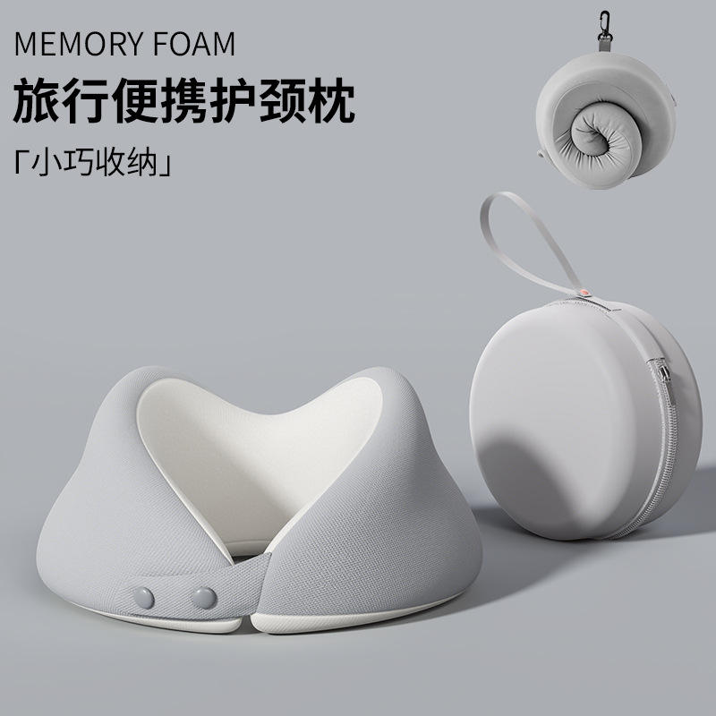 หมอนรองคอเมมโมรี่โฟมรูปตัวยู สีเบจ 28x26x14 ซม. พกพาสะดวก รองรับต้นคอ สำหรับงีบหลับในออฟฟิศและการเดินทาง