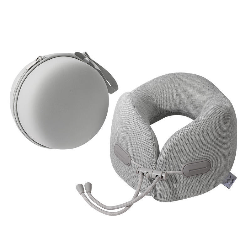 หมอนรองคอเมมโมรี่โฟมรูปตัวยูแบบพกพาสำหรับเครื่องบินสำนักงานงีบหลับพับได้สีเทาเข้ม