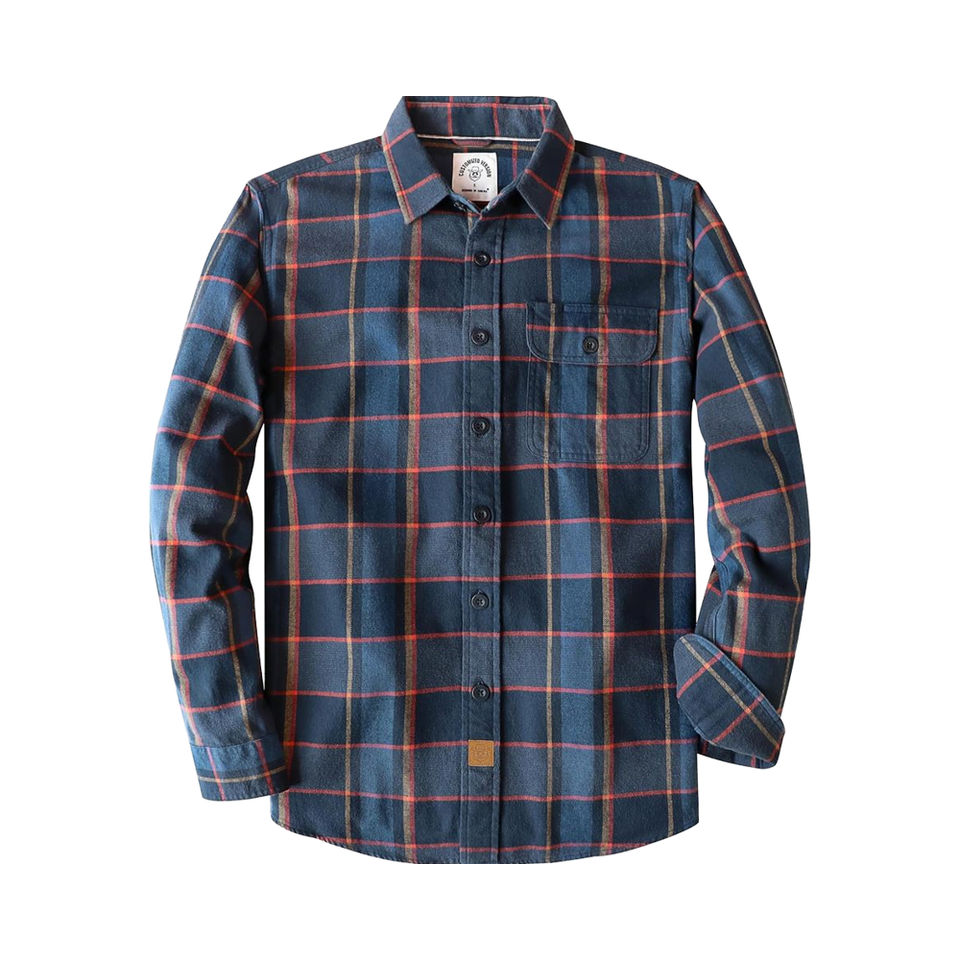 เสื้อเชิ้ตผ้าแฟลนเนลผู้ชาย ผ้าฝ้าย 100% แขนยาว คอตั้ง ติดกระดุม ลายสก็อต ป้องกันขนร่วง ทอแบบถัก อุ่นสบาย