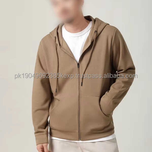 ชุดฮู้ดดี้ซิปผู้ชาย ผ้าฝ้าย 100% เนื้อหนา ลายถักเรียบ ดีไซน์มีซับใน กระเป๋าอเนกประสงค์ ทรงหลวมสไตล์วินเทจ-ODM