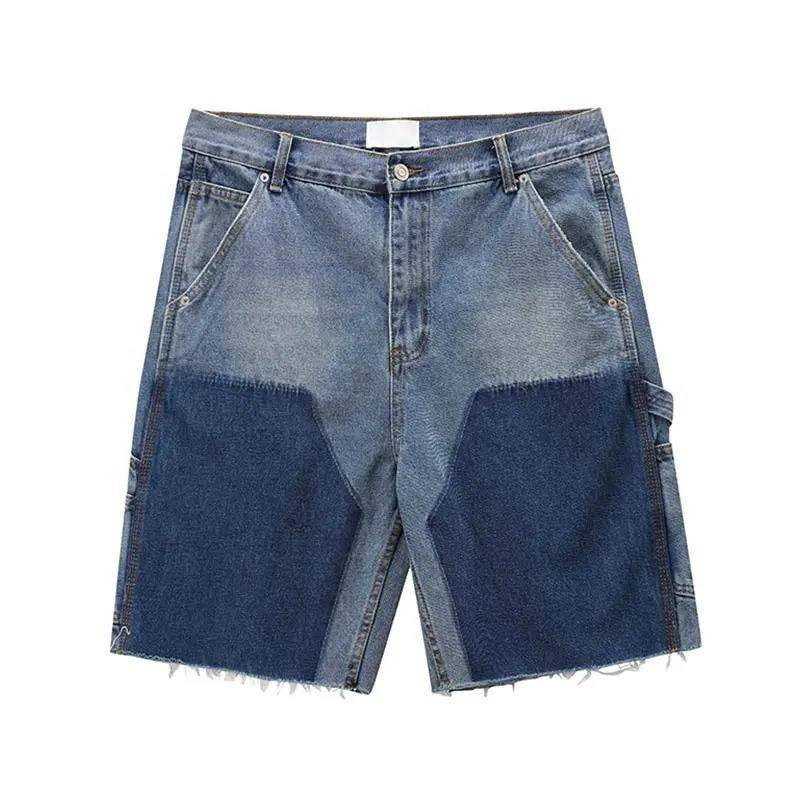 กางเกงขาสั้นเดนิมสไตล์วินเทจผ้าฝ้าย 100% สำหรับผู้ชาย หลายกระเป๋า เอวยางยืด เหมาะสำหรับฤดูร้อน