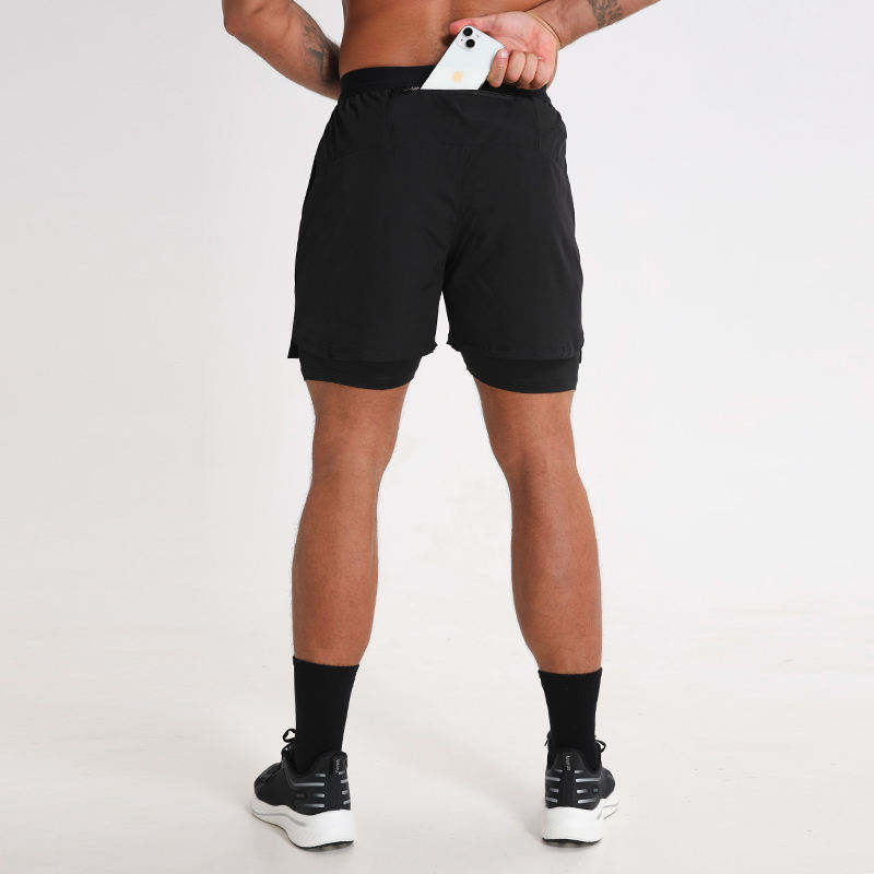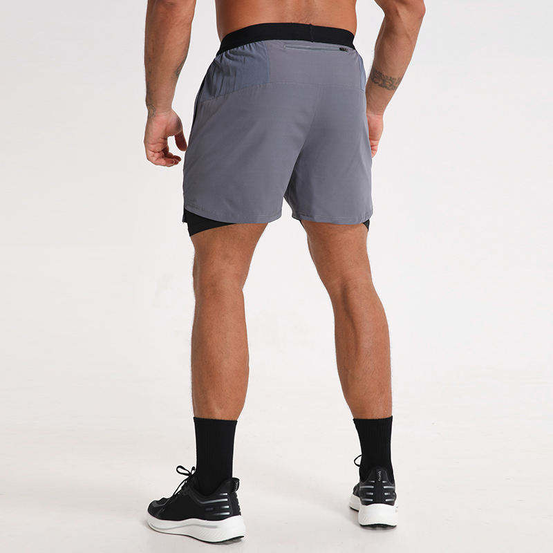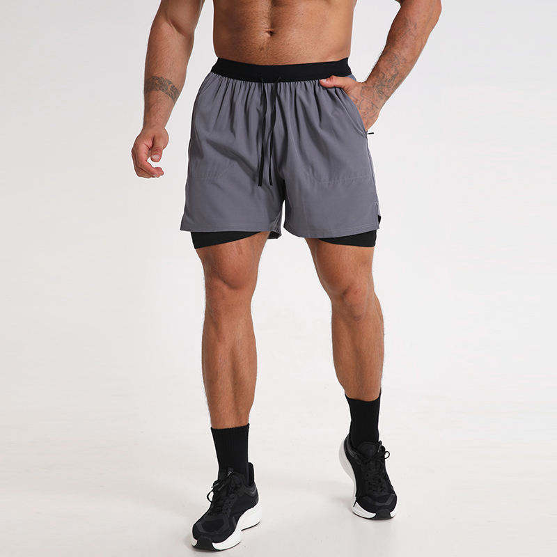 กางเกงยิมขาสั้นผู้ชายแบบรัดรูป เอวยางยืด มีกระเป๋าซิป ผ้าแห้งเร็ว ระบายอากาศได้ดี-กางเกงกีฬาเพาะกายคุณภาพสูง