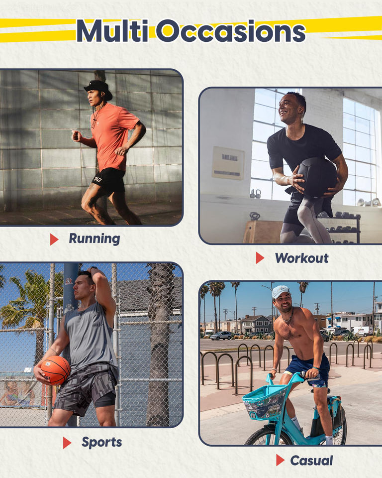 กางเกงขาสั้นผู้ชาย 2 in 1 สำหรับเล่นกีฬา ออกกำลังกาย ฟิตเนส พร้อมชั้นในรัดรูปและกระเป๋าแห้งเร็ว