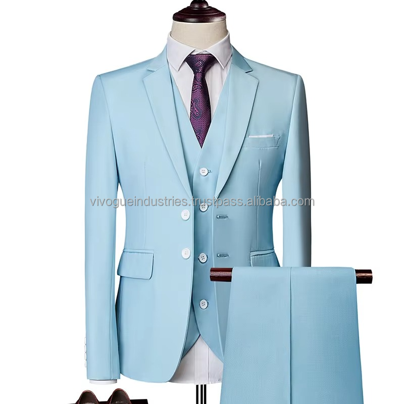 ชุดสูทธุรกิจผ้าลูกฟูกสีฟ้า3ชิ้นสำหรับผู้ชายเสื้อเบลเซอร์กระดุมสองแถวสูทแต่งงานแบบอิตาลีออกแบบได้ตามต้องการ