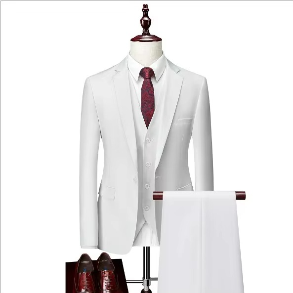 สูทผ้าลูกฟูกกระดุมสองแถวสำหรับผู้ชายสูทแต่งงานสไตล์อิตาลีกันยับ3ชิ้นสีน้ำตาล