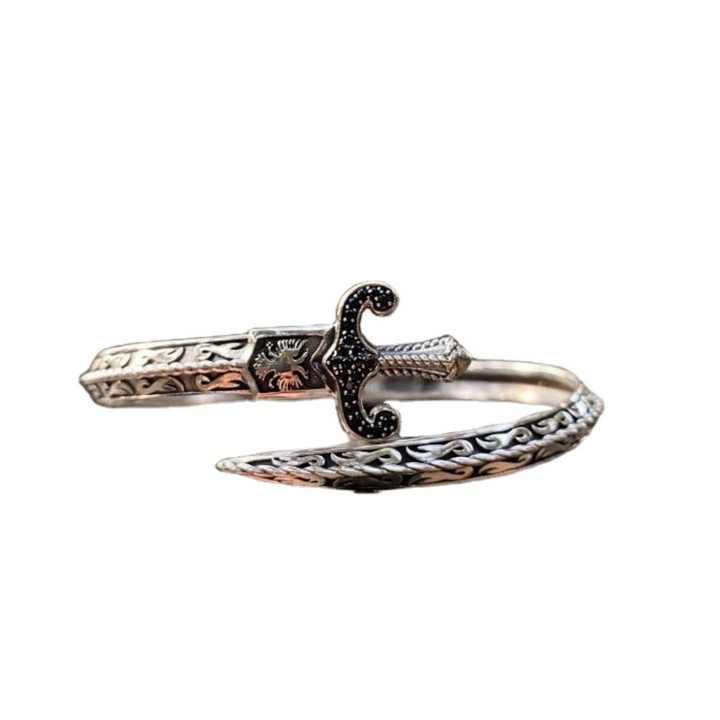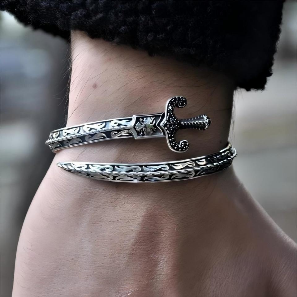 กำไลข้อมือและกำไลเงินแท้ 925 รูปทรงดาบสำหรับผู้ชาย ปรับขนาดได้ สไตล์พังก์ เหมาะสำหรับงานปาร์ตี้และเป็นของขวัญ