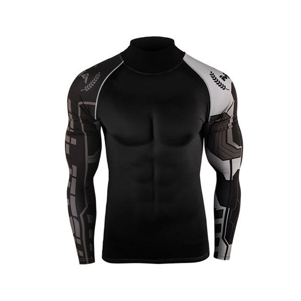 เสื้อรัดกล้ามเนื้อผู้ชาย MMA ลายซูเปอร์ฮีโร่ 3 มิติ แขนยาว แห้งเร็ว ระบายอากาศได้ดี ผลิตจากผ้าสแปนเด็กซ์/โพลีเอสเตอร์ เหมาะสำหรับออกกำลังกาย ฟิตเนส วิ่ง และฝึกซ้อม