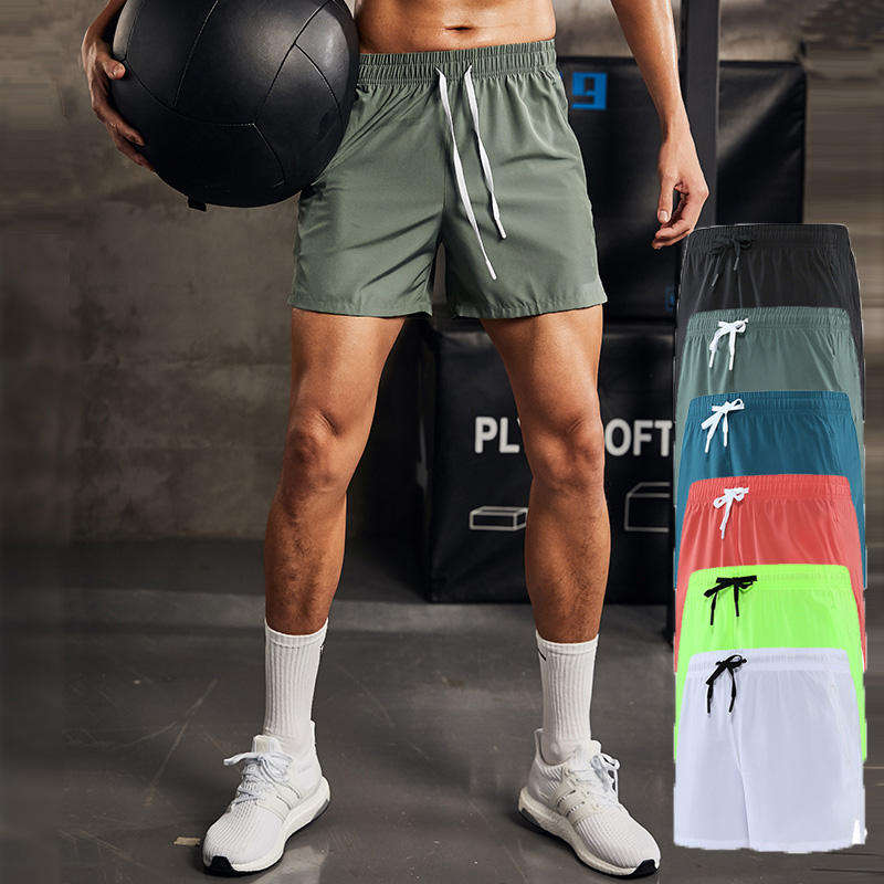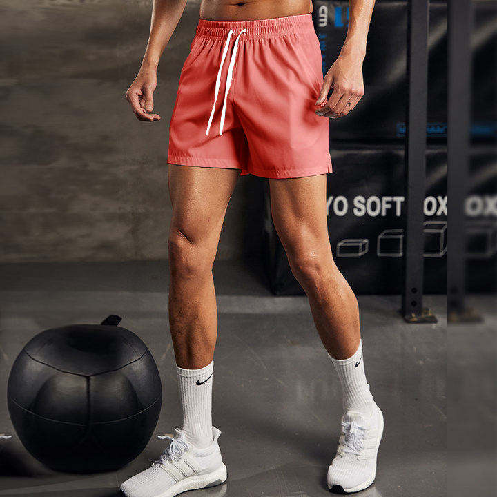 กางเกงขาสั้นออกกำลังกายผู้ชาย 5 นิ้ว แห้งเร็ว เหมาะสำหรับเล่นกีฬาชายหาด ผ้าโพลีเอสเตอร์ กางเกงวิ่งฟิตเนสผู้ชาย มีกระเป๋า