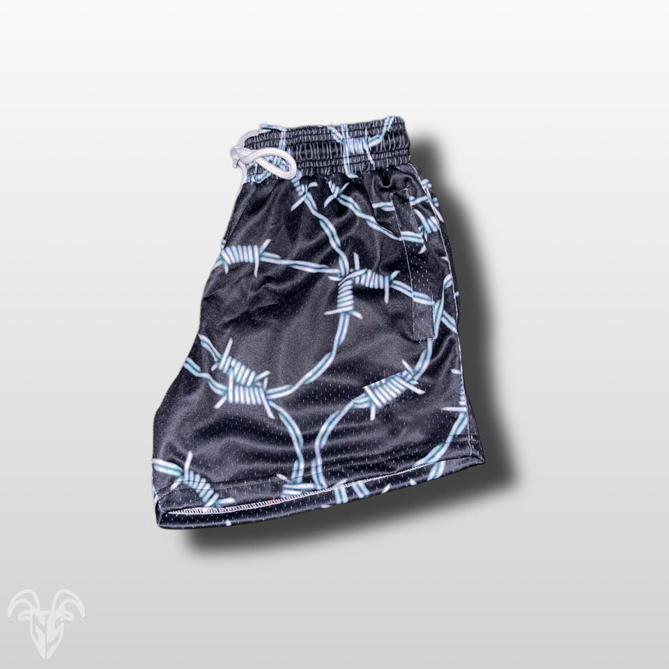 กางเกงบาสเก็ตบอลชายแบบตาข่าย 5 นิ้ว สไตล์ไฮสตรีท เอวยางยืดสูง โลโก้ด้านหน้า ผลิตจากโพลีเอสเตอร์/คอตตอน ระบายอากาศได้ดี แห้งเร็ว