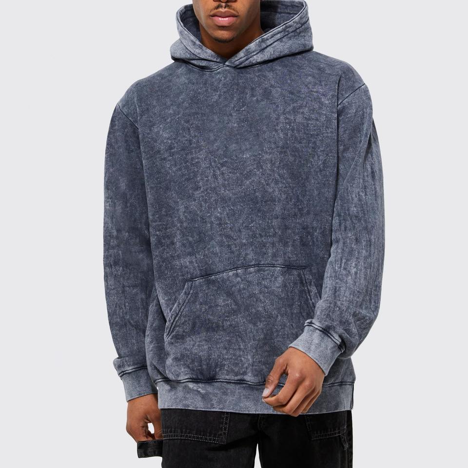 เสื้อฮู้ดดี้โอเวอร์ไซส์ผ้าหนาสำหรับผู้ชาย ล้างสีแบบแอซิด สำหรับฤดูหนาว | การพิมพ์ดิจิทัล ผ้าฝ้าย 100% | บริการสร้างแบรนด์ตามความต้องการของลูกค้า (OEM)