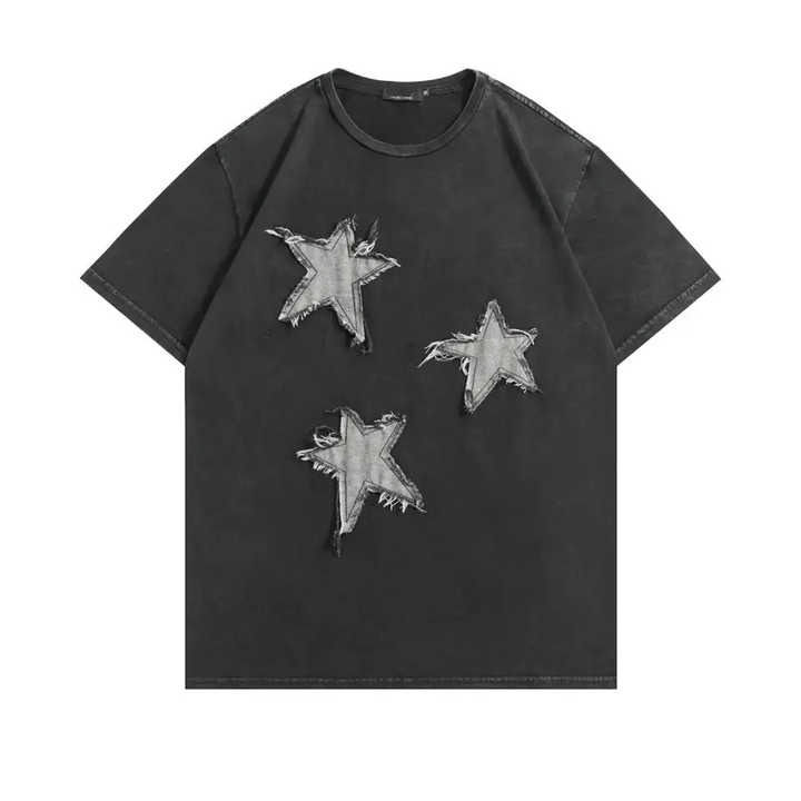 เสื้อยืดผู้ชายลายฟอกสี ขายส่ง ผ้าฝ้าย 100% ปักโลโก้ เสื้อโอเวอร์ไซส์ แต่งลายดาว เสื้อยืดผู้ชายสไตล์ดิสเทรส ราคาดี