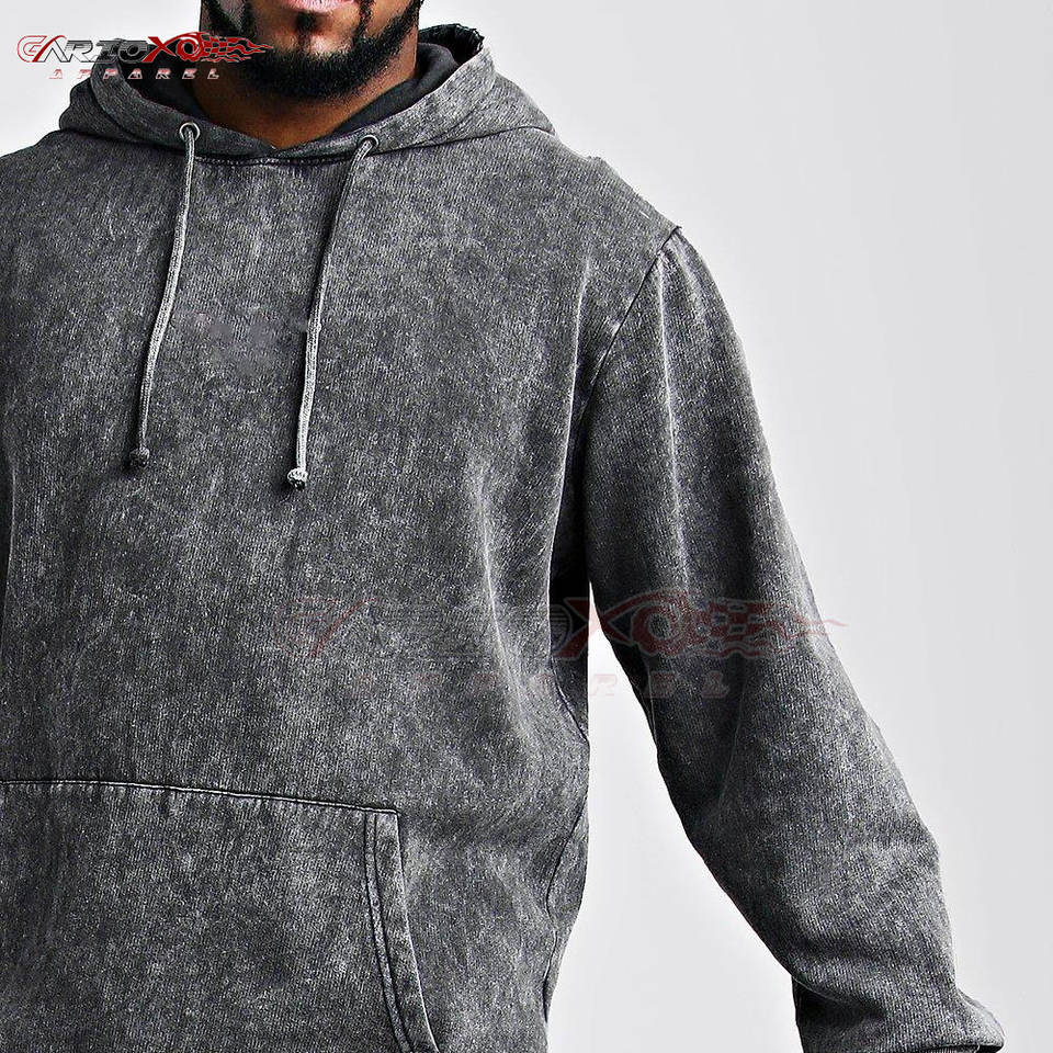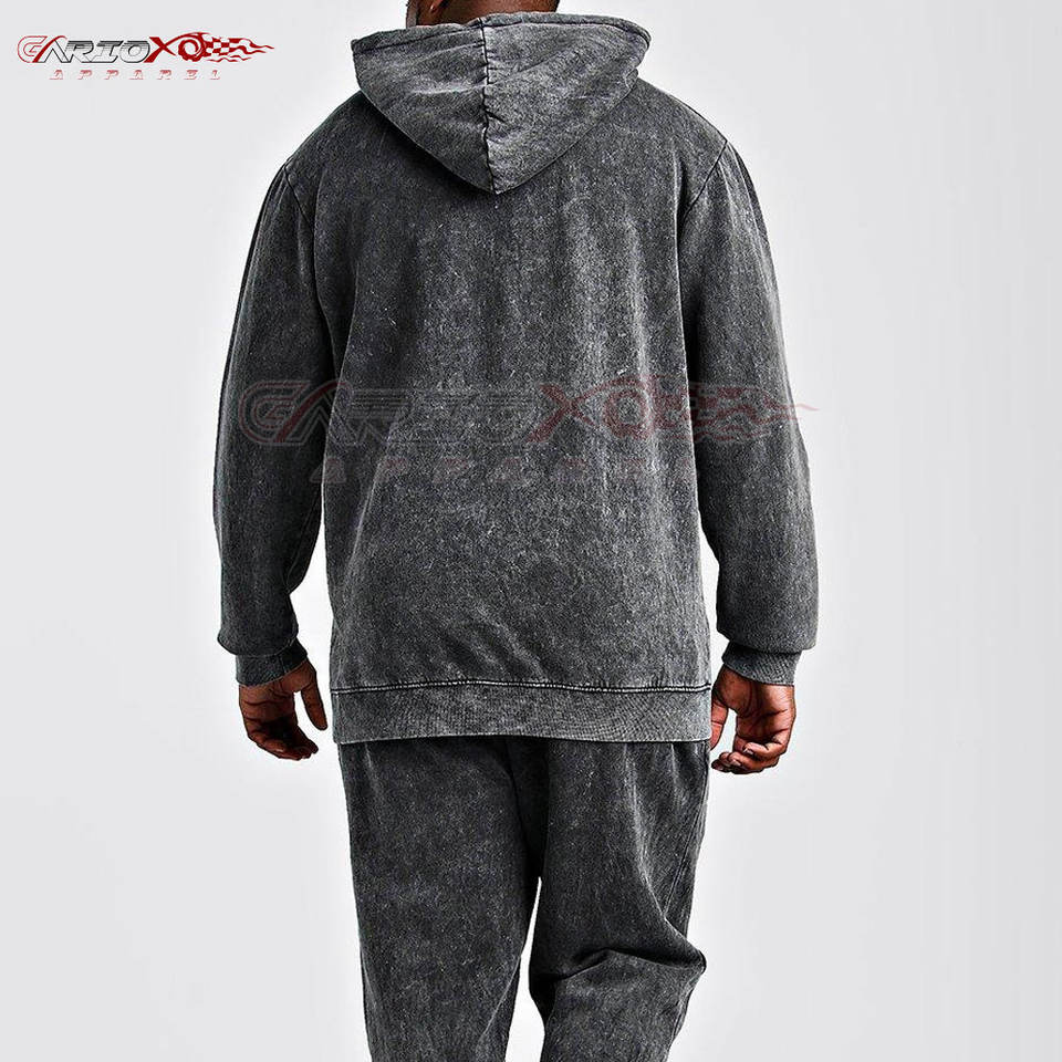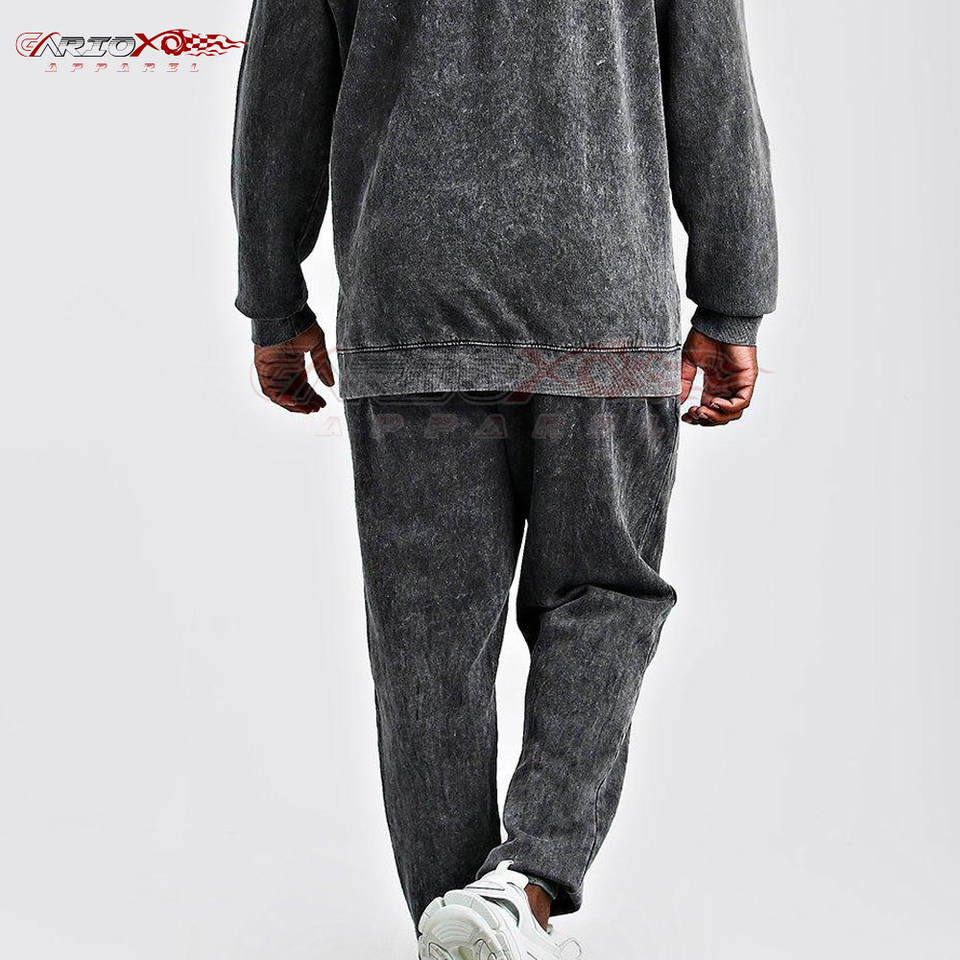 ชุดวอร์มผ้าว๊อชสำหรับผู้ชายชุดวอร์มผ้าว่มีฮู้ดแบบสวมหัวและกางเกงเอวสูงเข้าคู่กันสไตล์วินเทจ