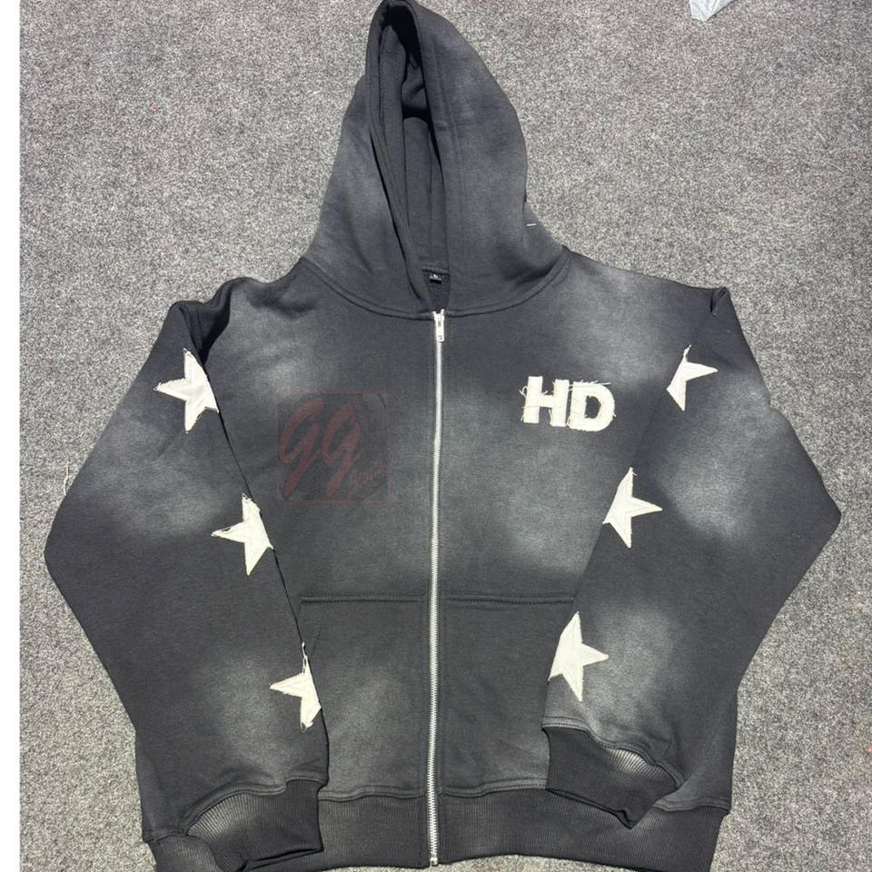 เสื้อมีฮู้ดผ้าซักกรดมีซิปมีฮู้ดสำหรับผู้ชายเสื้อฮู้ดแบบหนา460 GSM เสื้อฮู้ดไซส์ใหญ่พิเศษ