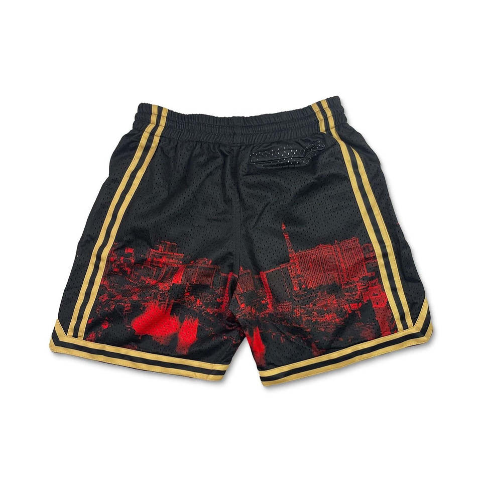 ผู้ผลิตกางเกงบาสเก็ตบอลผ้าตาข่ายสองชั้นแบบสตรีทแวร์พิมพ์ลายสกรีนแบบซับลิเมชั่นสั่งทำพิเศษ ความยาวขา 5 นิ้ว สำหรับผู้ชาย