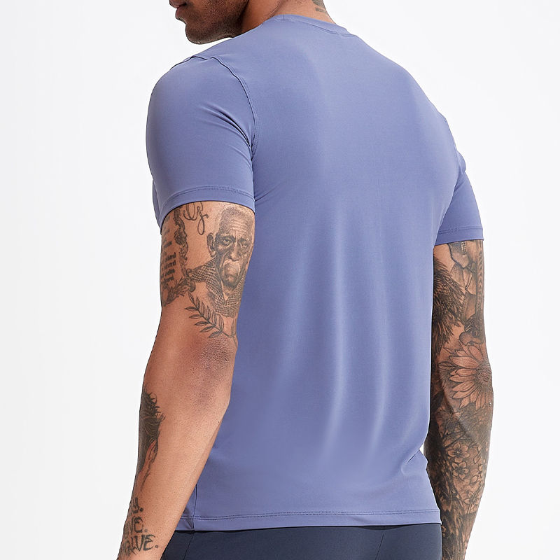 เสื้อยืดออกกำลังกายผู้ชายทรงสลิมฟิต ผ้าถัก ระบายอากาศ แห้งเร็ว สำหรับเล่นกีฬาและฟิตเนส เสื้อกีฬาสำหรับออกกำลังกายในยิมแบบมืออาชีพ