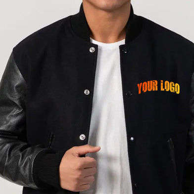เสื้อแจ็กเก็ตทีมเบสบอลเลตเทอร์แมนสำหรับผู้ชายเสื้อแจ็คเก็ตหนังแท้สีดำและดำ