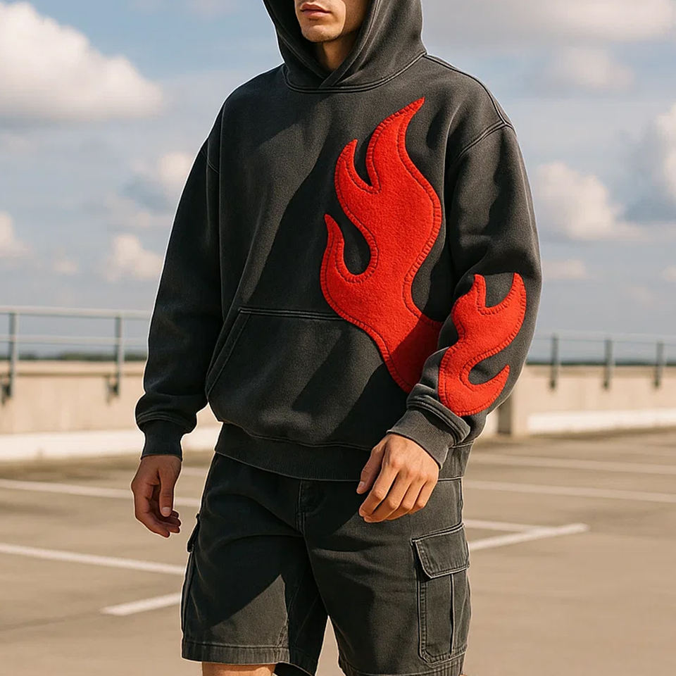 เสื้อฮู้ดสวมหัวโอเวอร์ไซส์สไตล์ย้อนยุคของผู้ชายเสื้อแนวสตรีทโอเวอร์ไซส์สไตล์วินเทจผ้าปะติดสำหรับฤดูใบไม้ร่วง