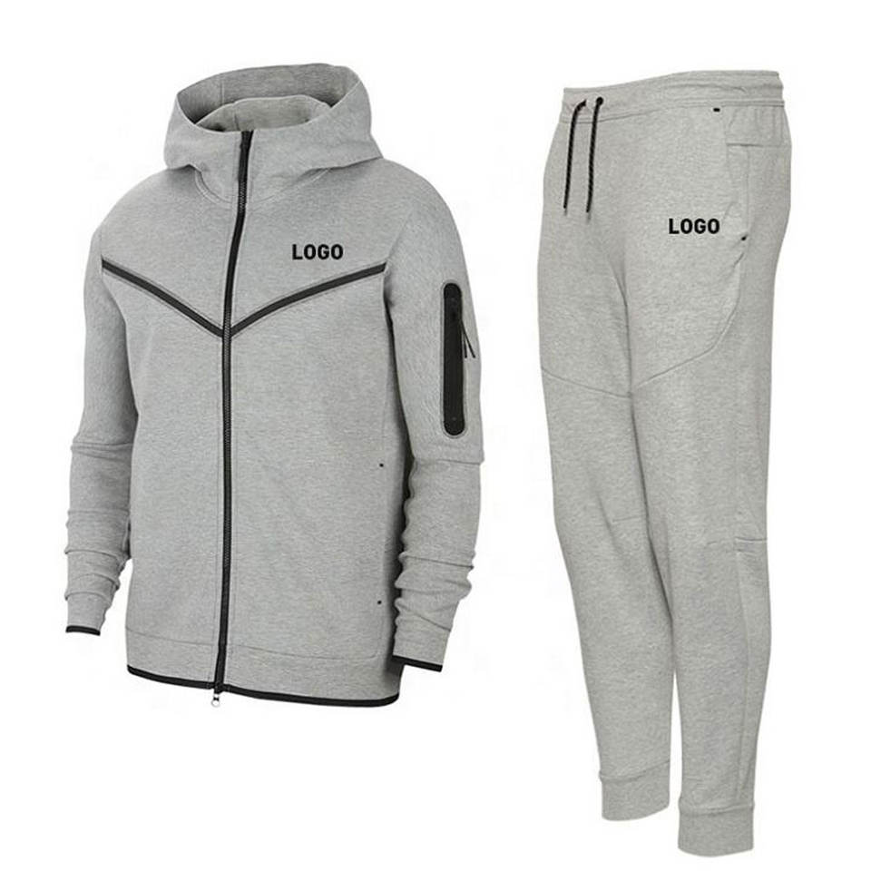 ชุดวอร์มเทคฟลีซสำหรับผู้ชายสำหรับฤดูหนาว - สีและโลโก้แบบกำหนดเอง เสื้อฮู้ดและกางเกงทรงเข้ารูประบายอากาศได้ดี สไตล์ทางการ