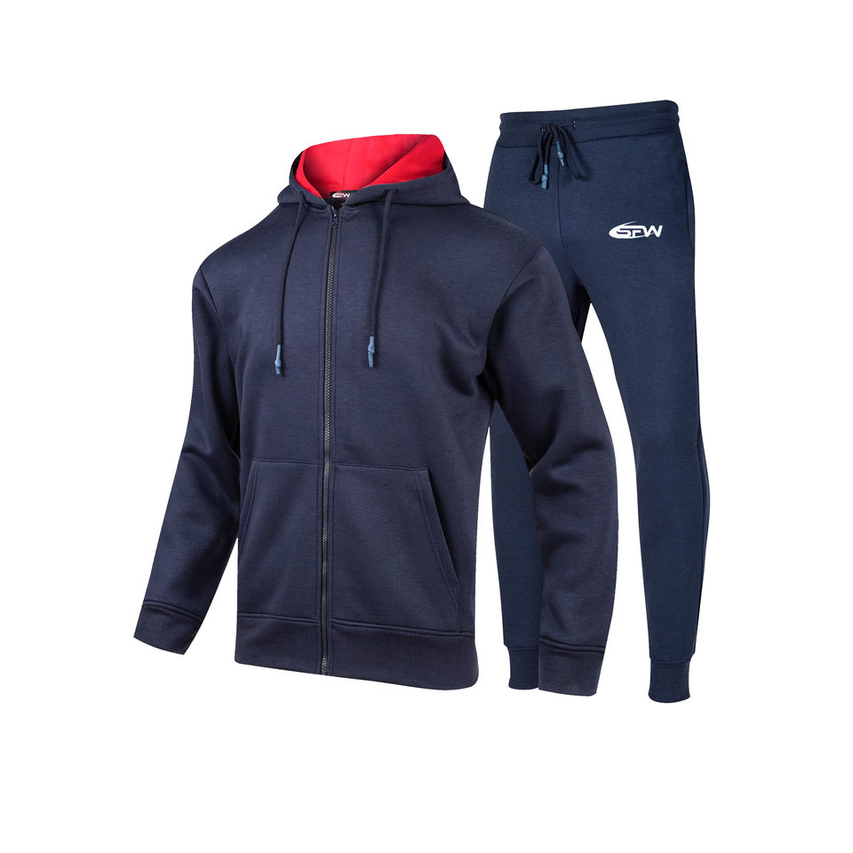 ชุดวอร์มกีฬาผู้ชาย ผ้าโพลีเอสเตอร์แห้งเร็ว กางเกงจ็อกเกอร์เอวยางยืด พร้อมแจ็คเก็ตซิปเต็มตัว เหมาะสำหรับฟิตเนส ทีม และสโมสร