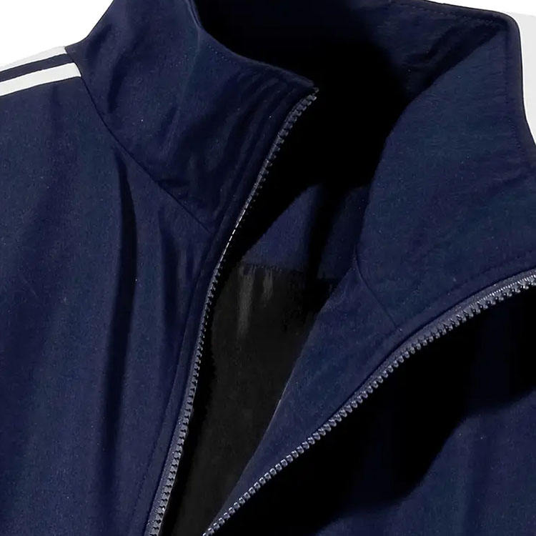 ชุดวอร์มกีฬาผู้ชาย แจ็คเก็ตคอตั้งซิปเต็มตัว กางเกงทรงตรง ลายทางสีขาว สไตล์สองชิ้น ชุดวอร์มกันลม
