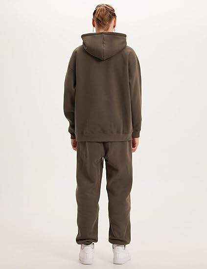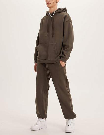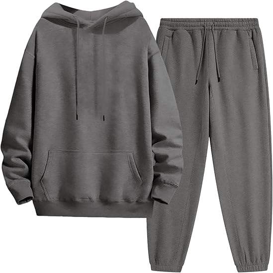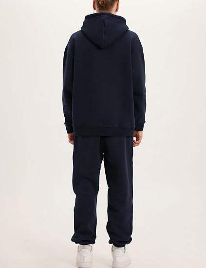 ชุดวอร์มผู้ชายแบบสองชิ้น เสื้อฮู้ดแขนยาวแบบซิปเต็มตัว กางเกงวอร์มลำลองสำหรับออกกำลังกายในฤดูหนาว ล้างสีแบบแอซิดวอช สีพื้น