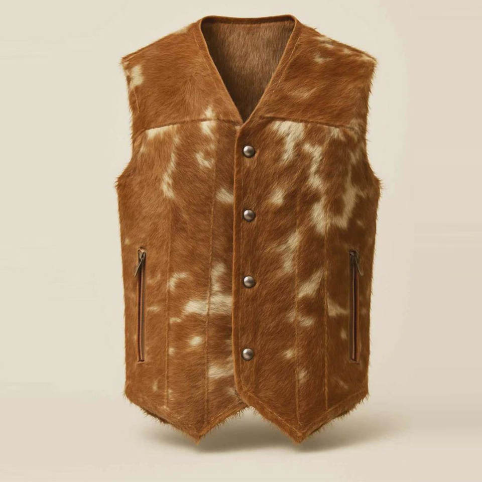 เสื้อกั๊กหนังวัวแท้สำหรับผู้ชาย - สไตล์วินเทจสุดเท่ คุณภาพพรีเมียม เสื้อคลุมลำลอง ระบายอากาศได้ดี