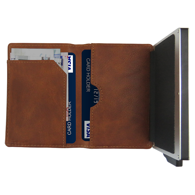 Men Automatic Credit Card Holder Leather Wallet Aluminum Mini Wallet with ID Card RFID Blocking Purse Short Fashion PU Unisex