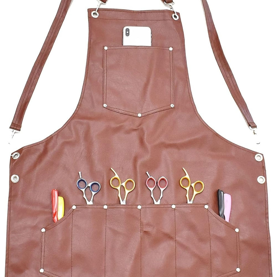 ผ้ากันเปื้อนช่างตัดผมผู้ชายผ้ากันเปื้อนหนัง PU สำหรับผู้ชายและผู้หญิงผ้ากันเปื้อนหนังกระเป๋าทำงานขนาดใหญ่แบบกำหนดเองโดยการสวมใส่สูงสุด