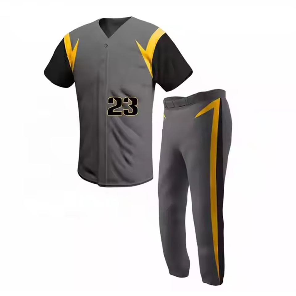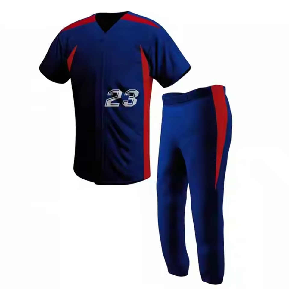 ชุดเสื้อเบสบอลคอวีสำหรับผู้ชายชุดกีฬาระบายได้ดีพร้อมเทคนิคการพิมพ์ลายพลัสไซส์