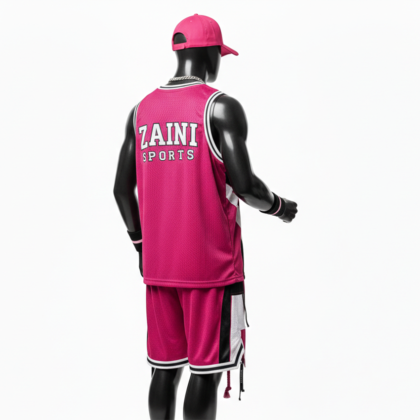 ชุดเสื้อและกางเกงบาสเก็ตบอลชาย คุณภาพสูง ผ้าตาข่ายโพลีเอสเตอร์ 180GSM น้ำหนักเบา สีชมพูขาว พร้อมปักโลโก้ตามสั่ง สำหรับผู้ชาย