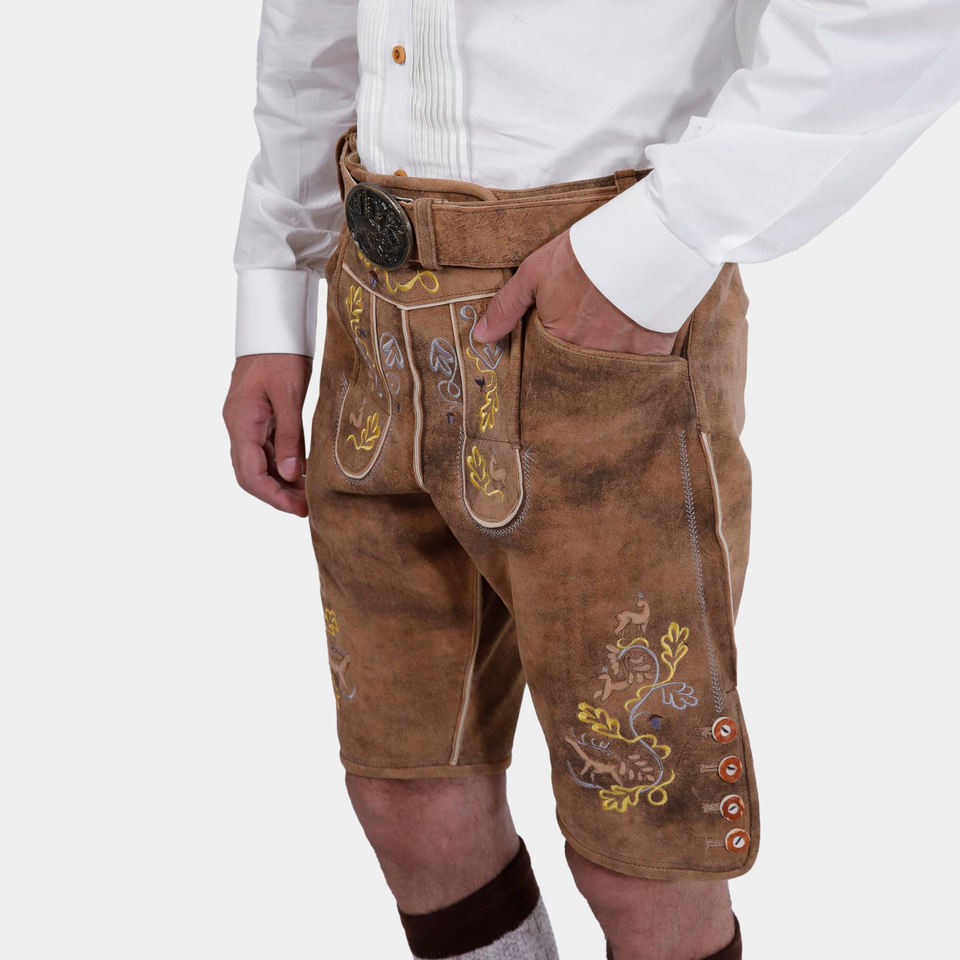 กางเกงขาสั้นบาวาเรียของแท้สำหรับผู้ชายกางเกงขาสั้นผู้ชายสีทึบบริสุทธิ์สำหรับสวมใส่กลางแจ้ง