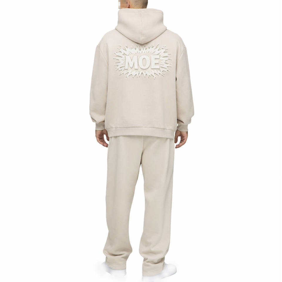 เสื้อฮู้ดผู้ชายสีเบจ ผ้าฝ้ายฟลีซ ทรงโอเวอร์ไซส์ สไตล์ลำลอง สตรีทแวร์ สำหรับขายส่ง