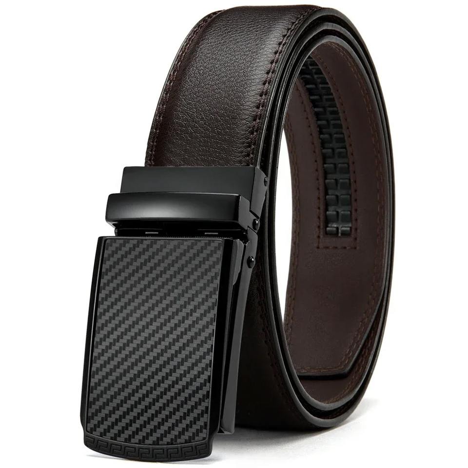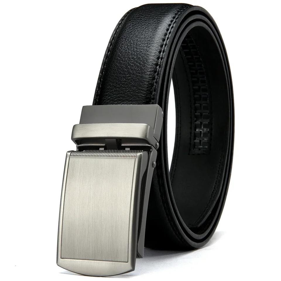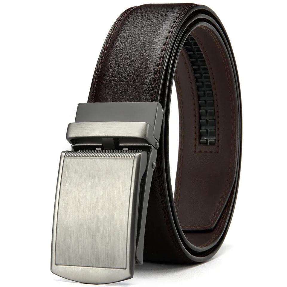เข็มขัดหนังวัวแท้สำหรับผู้ชาย หัวเข็มขัดเหล็กอัตโนมัติ สำหรับกางเกงยีนส์และกางเกงขายาว - คุณภาพสูง ปรับแต่งได้