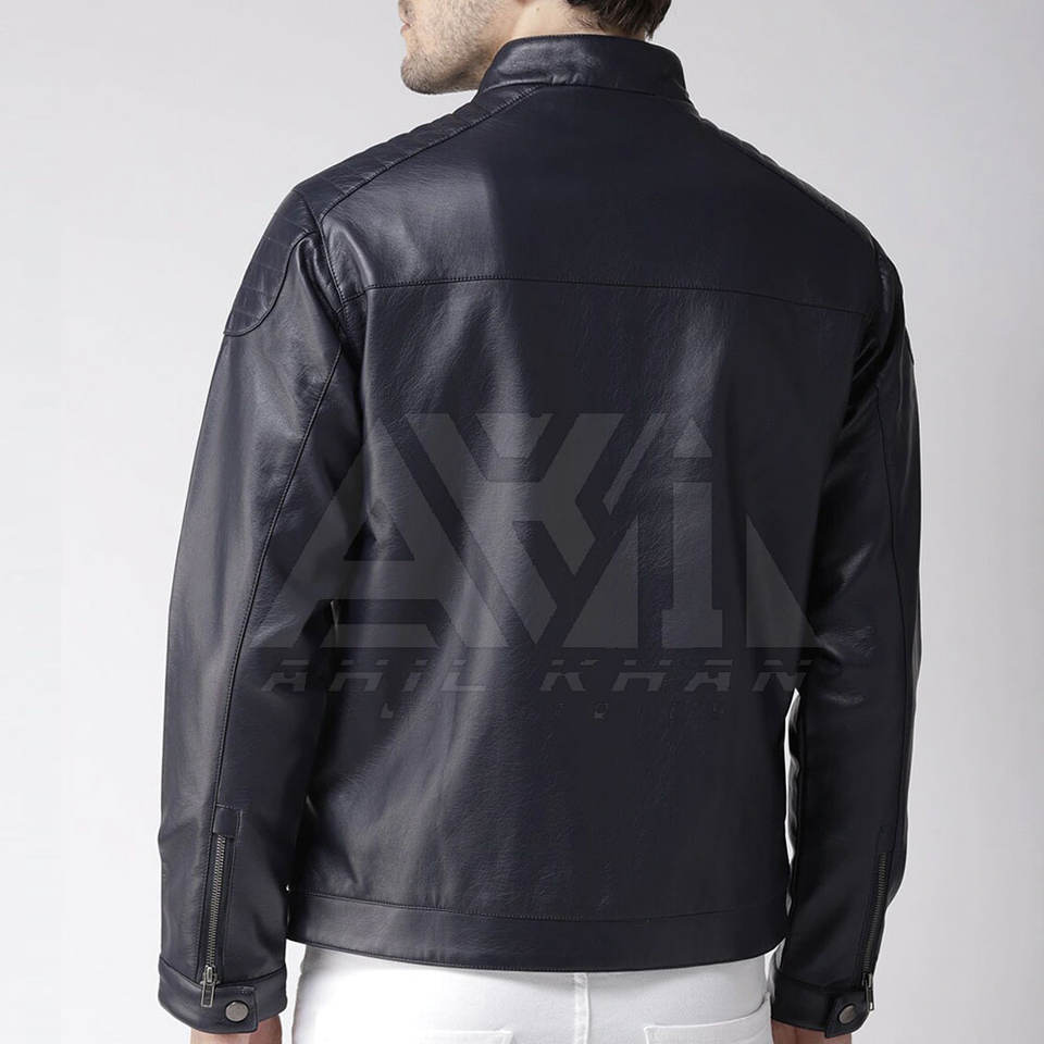 เสื้อแจ็คเก็ตหนังสำหรับผู้ชายสไตล์นักขี่มอเตอร์ไซค์ คอตั้ง ซิปหน้า รับผลิตตามแบบ (OEM) ขายส่ง