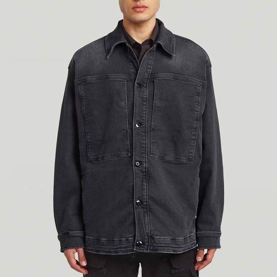 แจ็กเก็ตยีนส์สีดำสำหรับผู้ชายเสื้อโค้ทยีนส์ทรงโอเวอร์ไซส์ลำลองแขนยาวผ้าเดนิมซักเสื้อผ้าแนวสตรีทแฟชั่นออกแบบโลโก้ได้ตามต้องการ