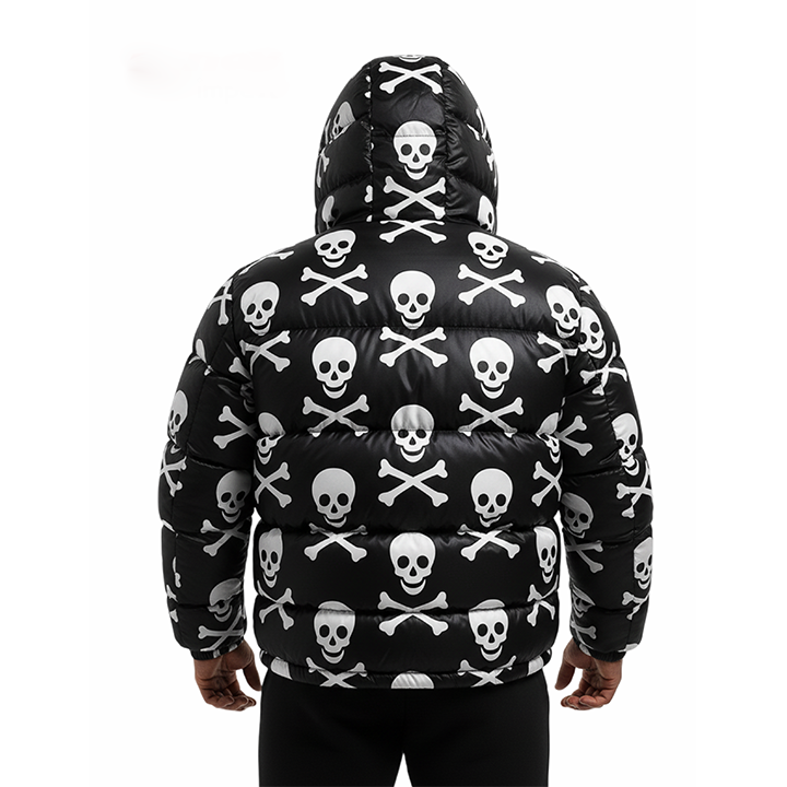 เสื้อแจ็คเก็ตพัฟเฟอร์สีดำสำหรับผู้ชาย แบบมีซิป ปิดผนึกอย่างดี มีฮู้ด เสื้อโค้ทกันหนาวทรงบับเบิ้ล สไตล์สตรีทแวร์ ทรงเข้ารูปสำหรับออกกำลังกาย รับผลิตแบบ OEM พร้อมสกรีนโลโก้ตามสั่ง