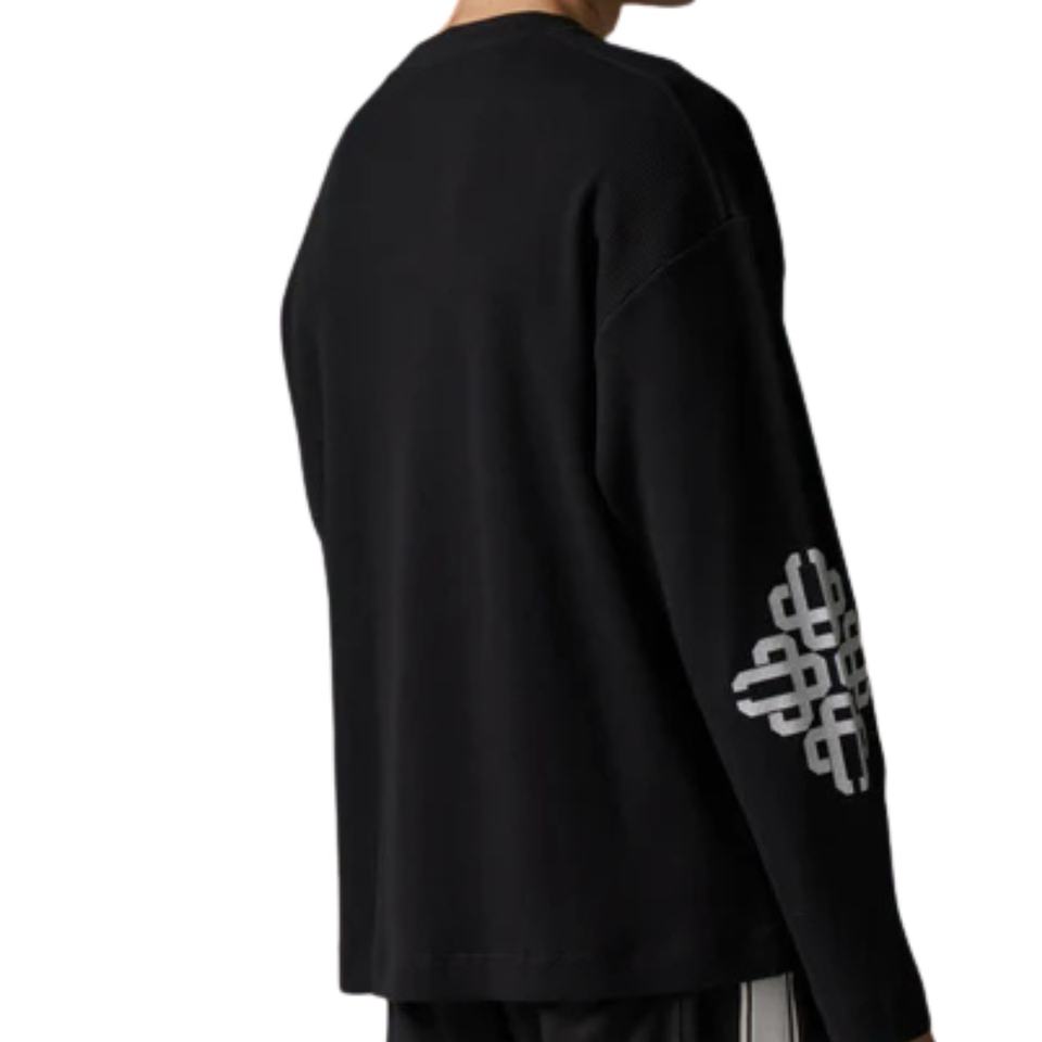 เสื้อยืดแขนยาวสีดำลายวาฟเฟิลสำหรับผู้ชาย พิมพ์ลายตราสัญลักษณ์ คอกลม สไตล์ลำลอง สตรีทแวร์ ผ้าฝ้าย แฟชั่นท็อป