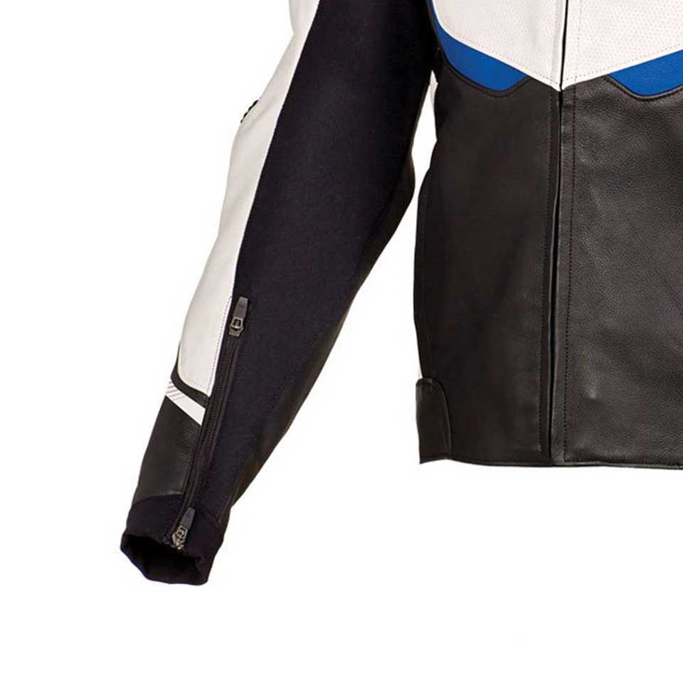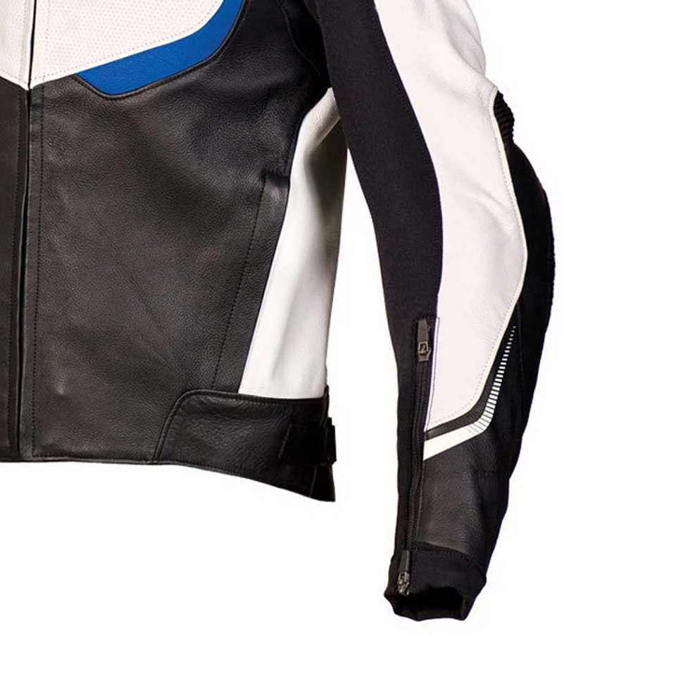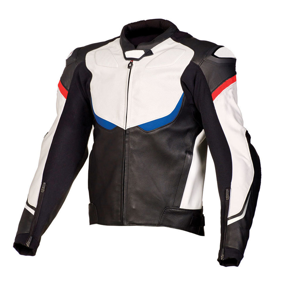เสื้อแจ็คเก็ตหนังสีดำขาวสำหรับผู้ชาย สไตล์นักแข่งรถจักรยานยนต์ พร้อมอุปกรณ์ป้องกันสำหรับขี่มอเตอร์ไซค์