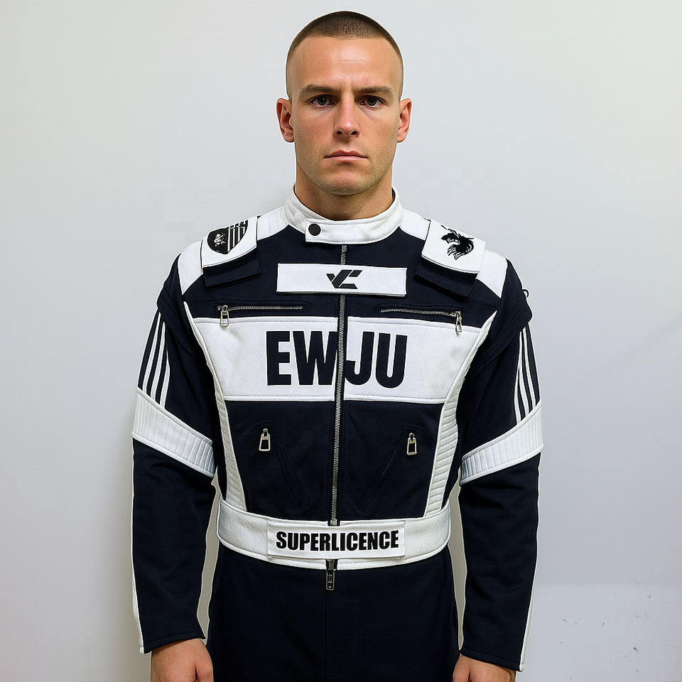 เสื้อแจ็คเก็ตขี่มอเตอร์ไซค์สไตล์ทหารสีดำขาวสำหรับผู้ชาย พร้อมอุปกรณ์ป้องกันสำหรับนักขี่