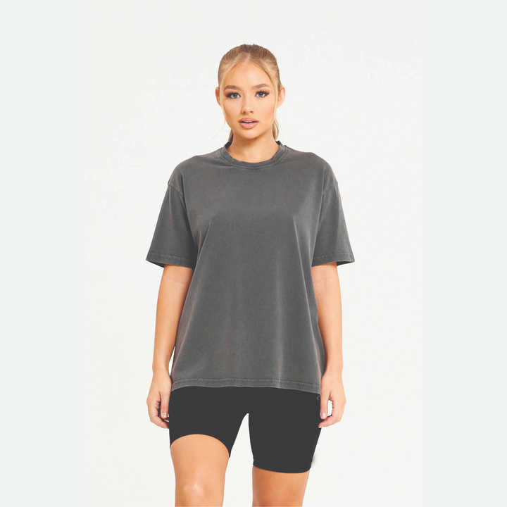 เสื้อยืดผู้ชายผ้าถักระบายอากาศ ทรงหลวม ไหล่ตก น้ำหนัก 180 กรัม ผ้าฝ้าย 100% พิมพ์ลายตัวอักษรตามสั่ง