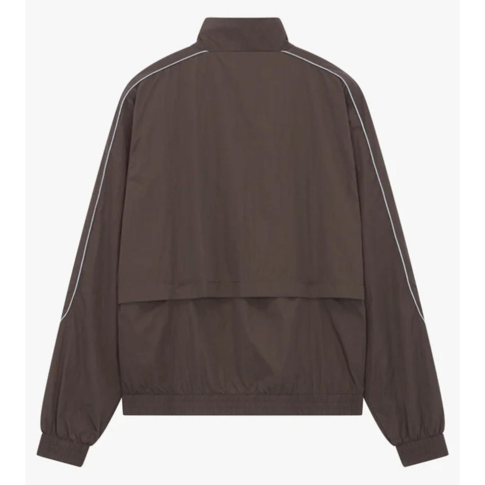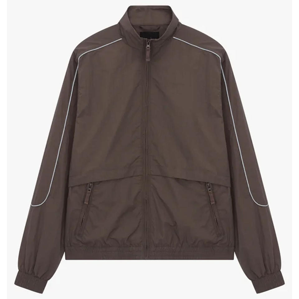 เสื้อแจ็คเก็ตกันลมไนลอนน้ำหนักเบาสีน้ำตาลสำหรับผู้ชาย พร้อมแถบสะท้อนแสง ดีไซน์ซิปแบบสวมใส่สบาย เหมาะสำหรับใส่เล่นกีฬา กันน้ำ