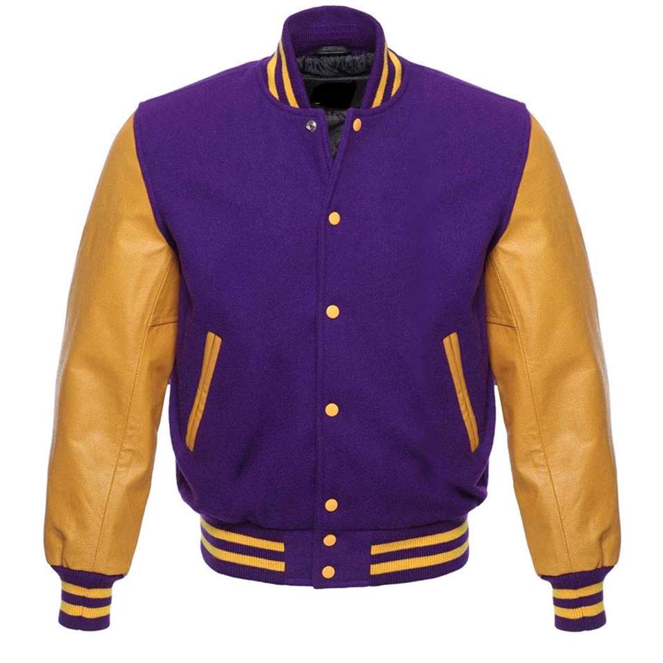 แจ็กเก็ตแขนหนังแท้สำหรับผู้ชายผ้าขนสัตว์สีดำเบสบอลทีมตัวแทนมหาวิทยาลัยสีน้ำตาล