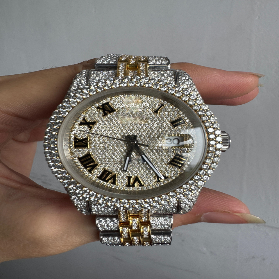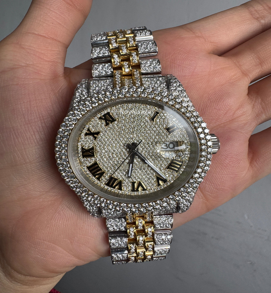 นาฬิกาหน้าอกผู้ชายเทรนด์ใหม่นาฬิกาเพชรกรอบกลม VVS Moissanite ส่วนนาฬิกาเพชรที่กำหนดเองได้