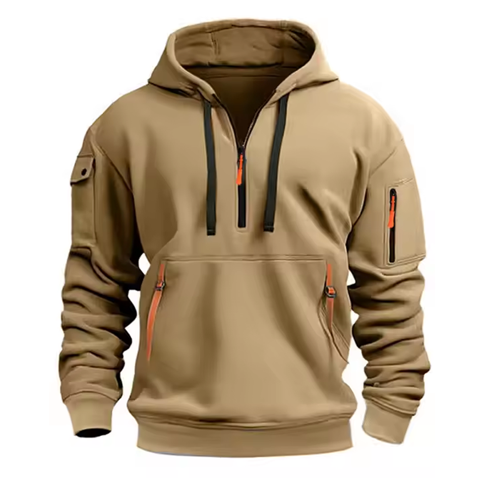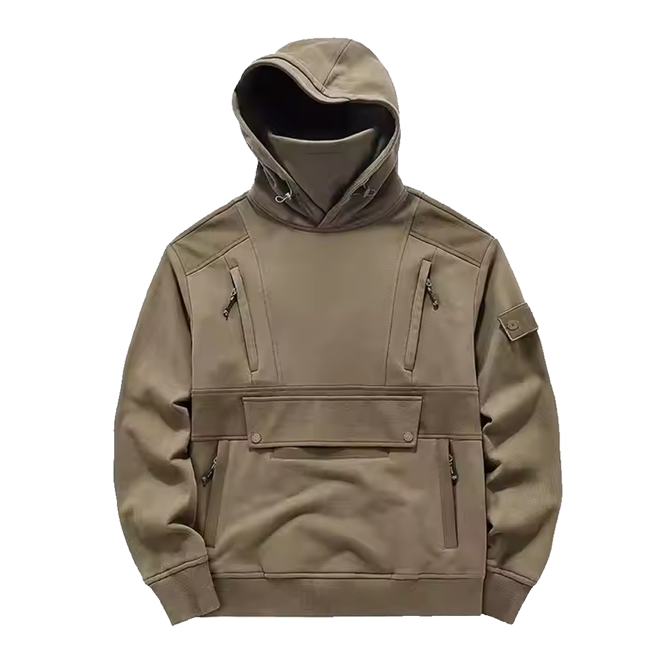 เสื้อสเวตเตอร์คาร์โก้ผู้ชาย, เสื้อกันหนาวมีฮู้ดเย็บปะติดแบบสวมหัวมีหลายกระเป๋า
